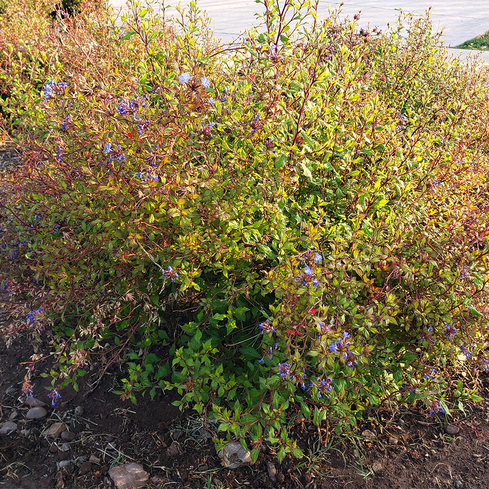 Arbusto conocido como «plumbago chino», es valorado por sus vibrantes flores y follaje otoñal. Crece hasta aproximadamente 1 metro de altura, prefiere pleno sol o sombra parcial y es tolerante a la sequía una vez establecido. Ideal para macizos, áreas rocosas, contenedores y puntos focales de otoño.