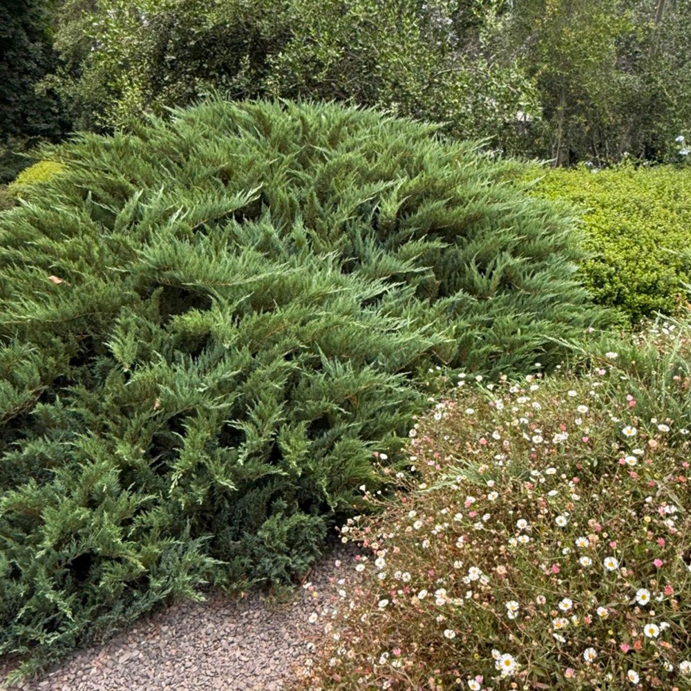 Arbusto de porte bajo y extendido, que forma una densa cubierta con follaje verde oscuro, a veces con un tinte grisáceo. Esta conífera es extremadamente rústica y poco exigente; prefiere un suelo con excelente drenaje, tolerando suelos pobres y arenosos, y una exposición a pleno sol. Es altamente resistente a la sequía una vez establecida, requiriendo solo riegos ocasionales durante veranos muy calurosos. Recomendado para bordes, muros de contención, macizos y cubresuelos a gran escala.