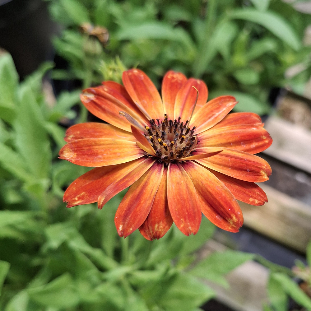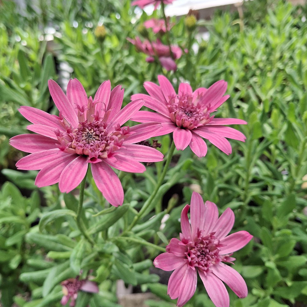 Planta perenne de hábito arbustivo y denso que destaca por sus flores radiantes con centros contrastantes. Prefiere suelos ligeros con excelente drenaje para evitar la pudrición radicular, por lo que se recomienda dejar secar los primeros 2-5 cm de suelo antes de volver a regar. Ubicar a pleno sol para que sus flores se abran completamente. Ideal para macizos florales, rocallas o como planta colgante en macetas y jardineras.