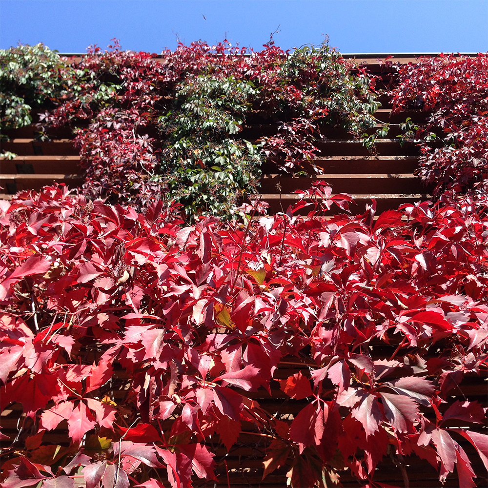 Parthenocissus quinquefolia es una trepadora leñosa de gran vigor, destaca por su follaje caduco que ofrece un espectáculo en otoño, cuando sus hojas verde intenso se tornan rojas y purpúreas. Necesita una exposición de pleno sol o semisombra, un suelo bien drenado y riegos moderados una vez establecida. Ideal para utilizar como cobertura vertical de fachadas, muros y pérgolas. Sus zarcillos con ventosas le permiten trepar superficies rápidamente, sin la necesidad de estructuras de amarre complejas.