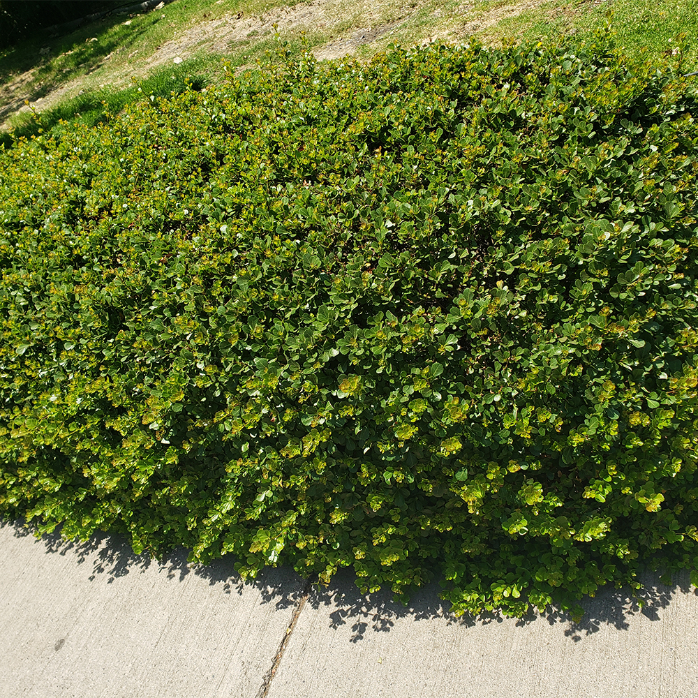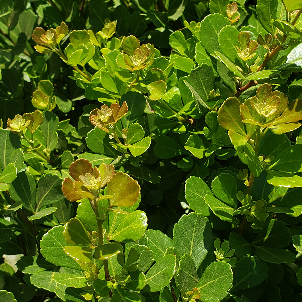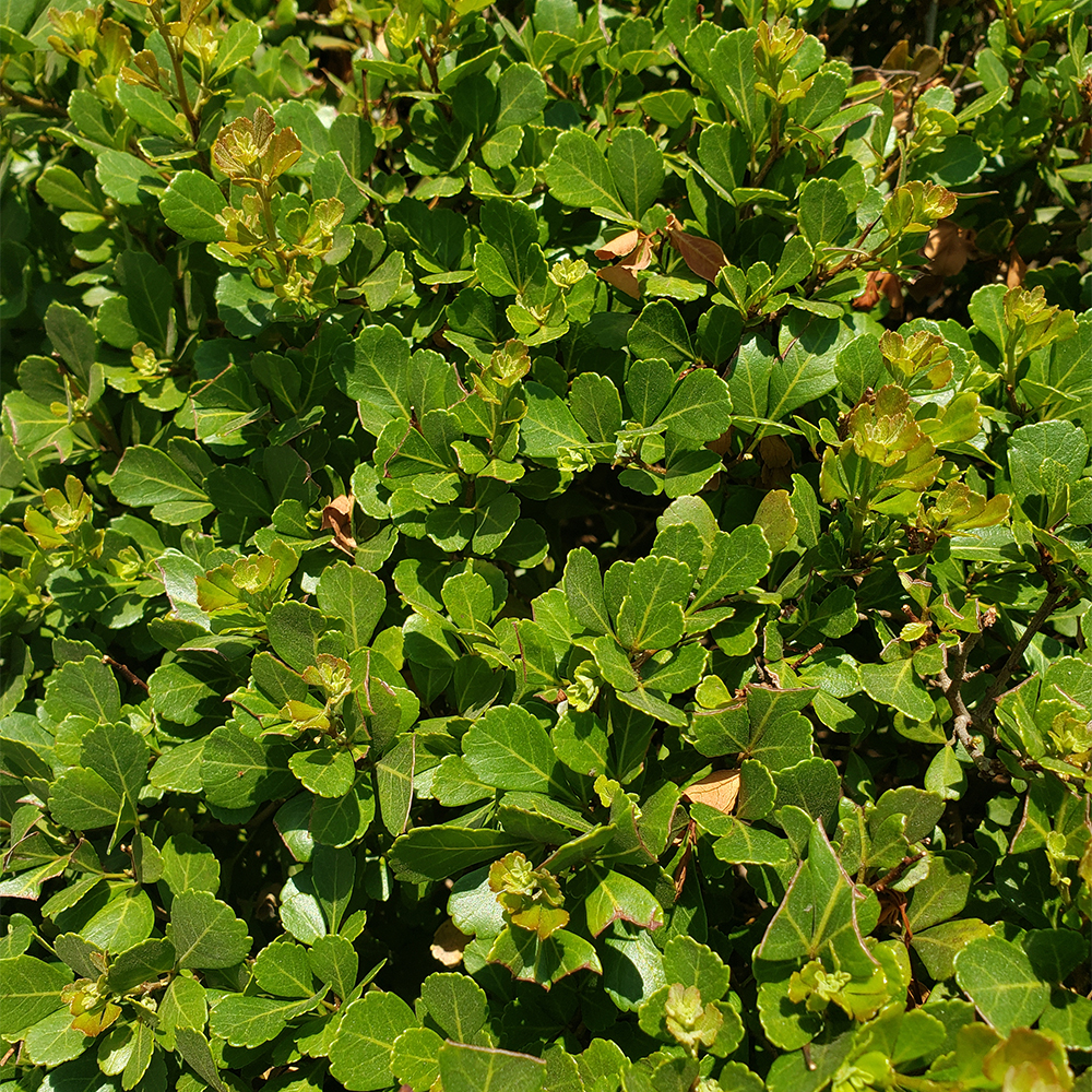 Arbusto denso de forma redondeada y crecimiento rápido. Produce racimos de flores pequeñas de color crema o verde claro, que generalmente aparecen en otoño. Estas flores dan paso a pequeñas bayas de color rojo vino o púrpuras que son un atractivo visual adicional. Es muy popular para formar cercos vivos o setos debido a su densidad y facilidad de mantenimiento.