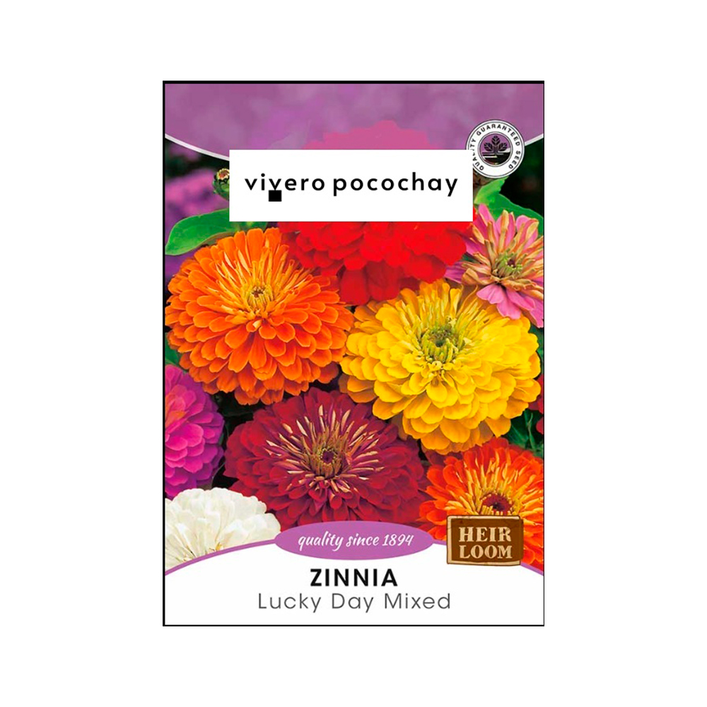 La Zinnia ‘Lucky Day’ se caracteriza por producir flores grandes de tipo dalia sobre tallos fuertes, lo que las hace excelentes tanto para el jardín como para arreglos de flor cortada. Prefiere cultivarse a pleno sol en un suelo fértil y con excelente drenaje, ya que es muy sensible al exceso de humedad en las raíces y al frío intenso. Requiere riegos regulares aplicados directamente a la base y una buena circulación de aire entre plantas. Se recomienda la siembra directa en el lugar definitivo una vez que el clima sea cálido, ya que no tolera bien el trasplante, y agradece el retiro constante de flores marchitas para prolongar su floración durante toda la temporada.