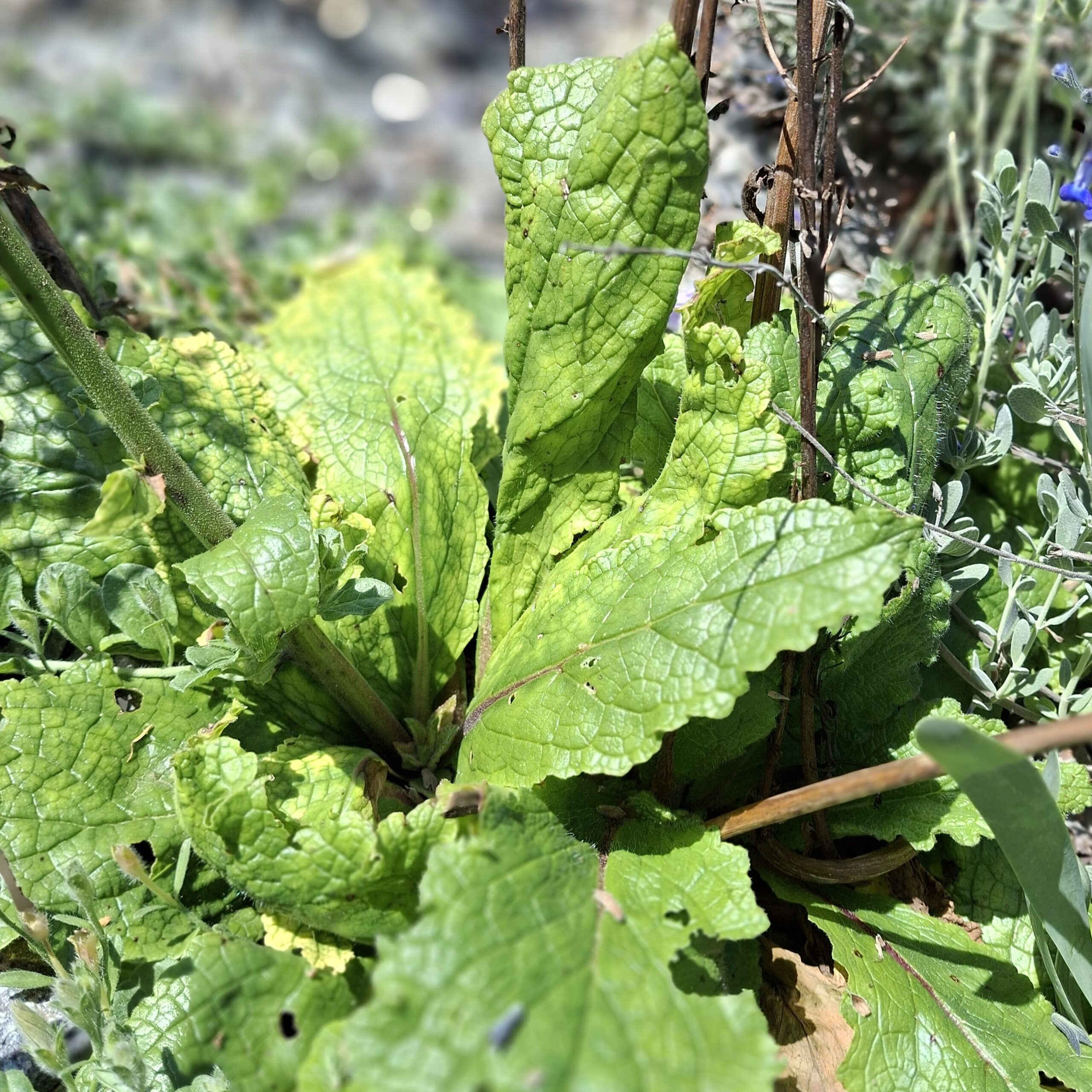 Planta perenne de vida corta que se caracteriza por formar una roseta basal de hojas verdes arrugadas de la que emergen esbeltas y elegantes espigas de flores color violeta intenso con centros oscuros y estambres púrpuras. Si bien muchas veces es bienal, aparecen nuevas plántulas a su alrededor cada temporada de sus semillas. Requiere una ubicación a pleno sol y un suelo bien drenado, preferiblemente alcalino y no demasiado fértil para evitar un crecimiento excesivamente lacio; una vez establecida es notablemente resistencia a la sequía. Se utiliza en borduras mixtas y en jardines de estilo naturalista.